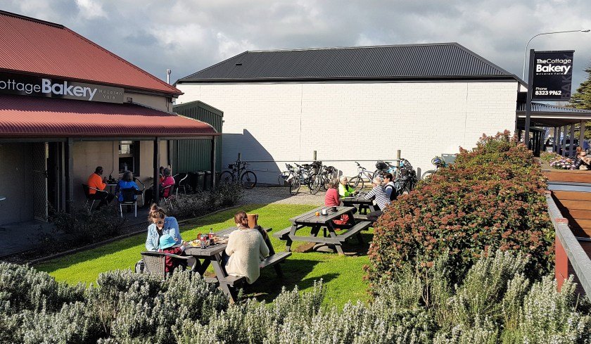 In McLaren Vale, the Cottage Bakery is conveniently located close to the Almond Train where the Coast to Vines Rail Trail finishes and becomes the Shiraz Rail Trail.